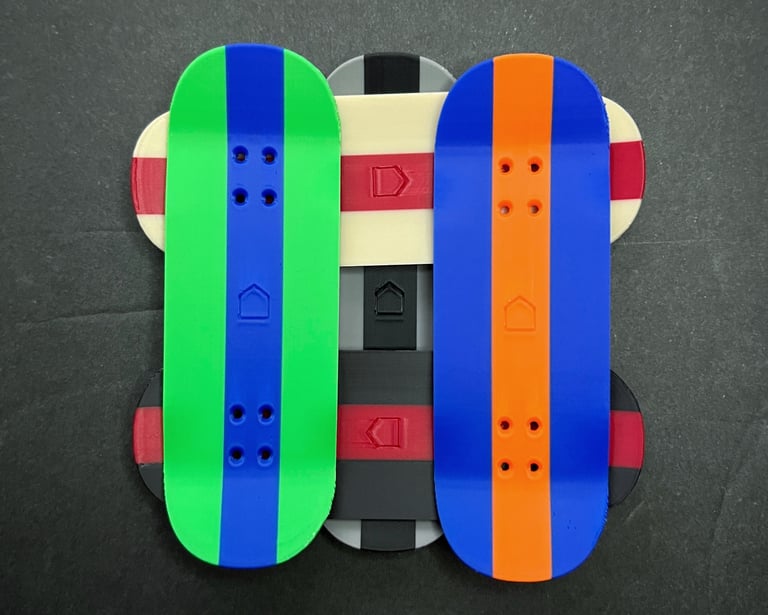 Custom printed matching display stand — angled, minimal, and built to hold your deck upright. Includes rear slot to secure the COS.